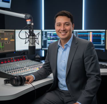 Ricardo Ferrer Jr: Voz oficial, marca y programador de 406 MT Digital Radio. Abogado y locutor profesional con trayectoria internacional ; su versatilidad bilingüe y dominio técnico definen nuestra identidad sonora y musical con estándares globales. ¡Excelencia en cada frecuencia!